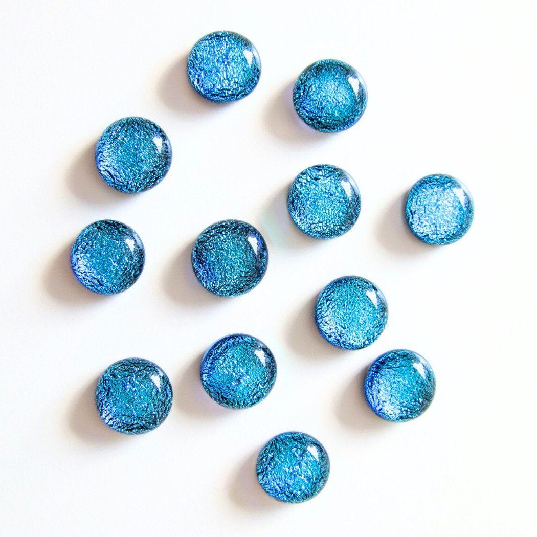 Cabochons ronds en verre dichroïque bleu avec reflets arc-en-ciel / 14,5 mm