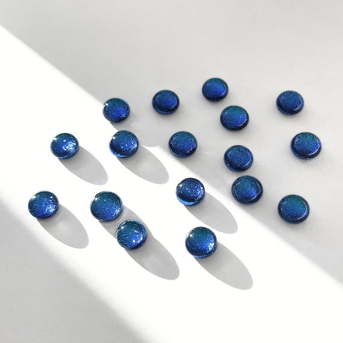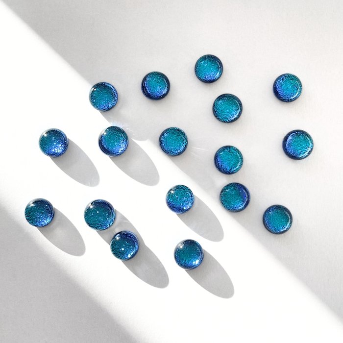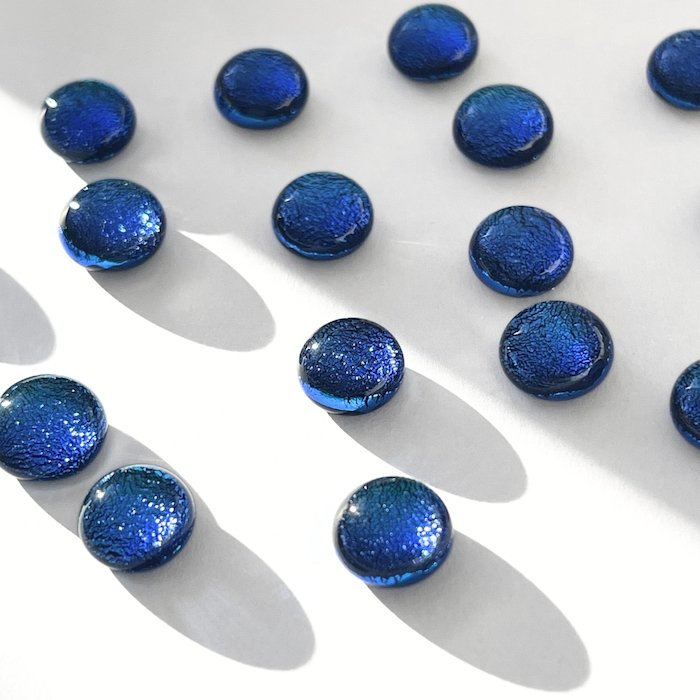 Ces cabochons en verre dichroïque présentent une teinte principale bleu ciel, avec des reflets bleu foncé, visibles selon l’angle de la lumière. Réputé pour sa brillance et ses propriétés optiques uniques, le verre dichroïque est parfait pour sublimer vos créations.